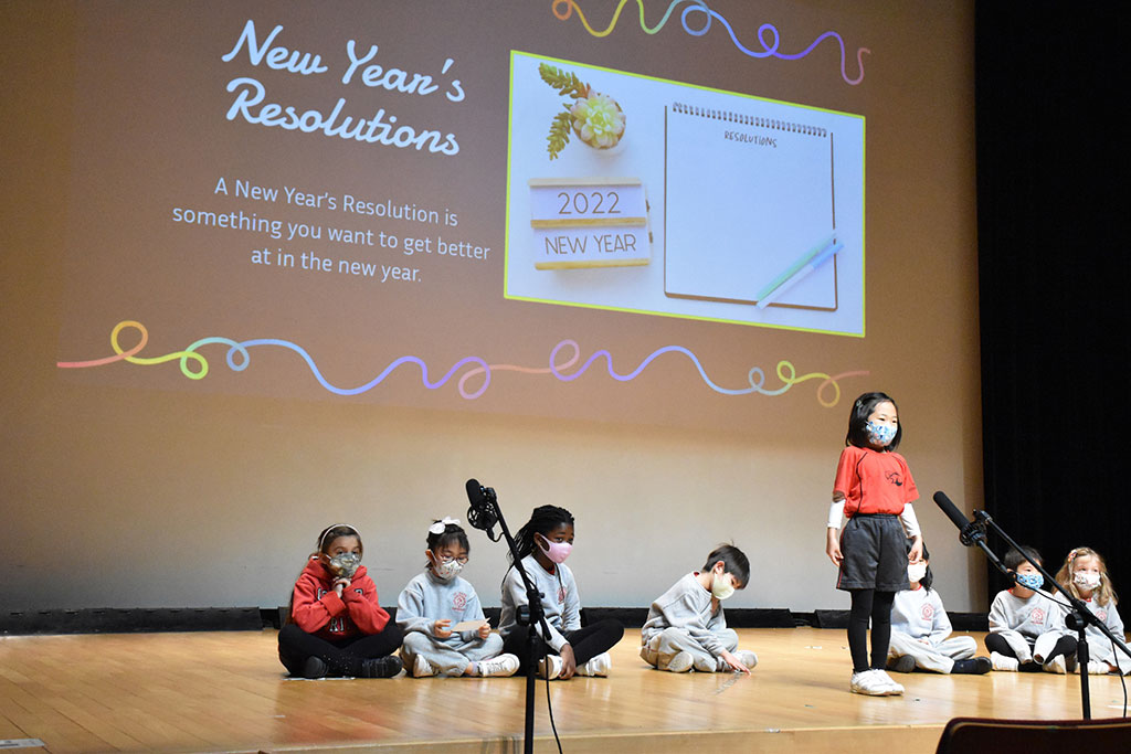 The students of 1EO presented an engaging assembly for us on February 4th with the theme, "New Year‘s Resolutions.“ In the assembly, students in the audience were asked what their resolutions are for this year and everyone participated in interactive games.